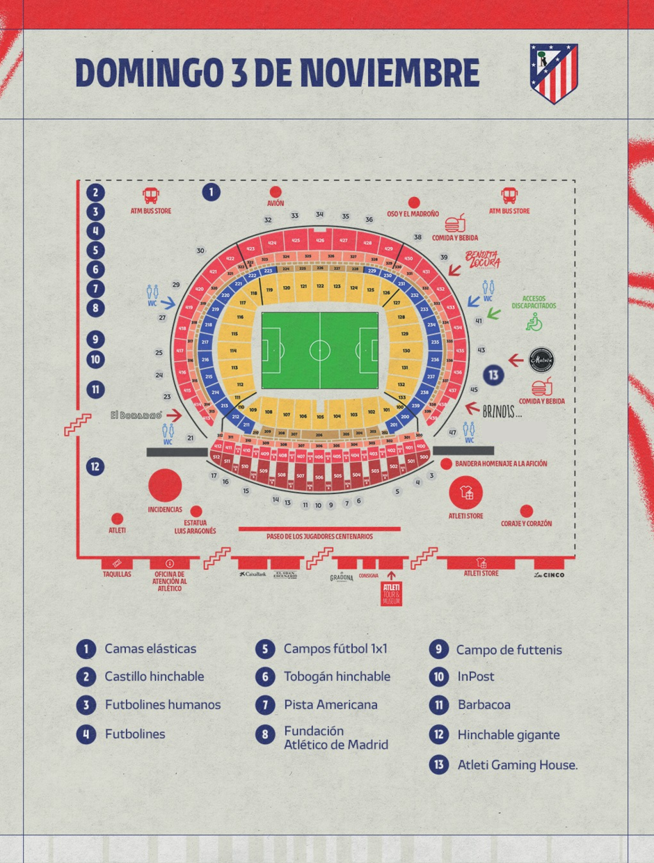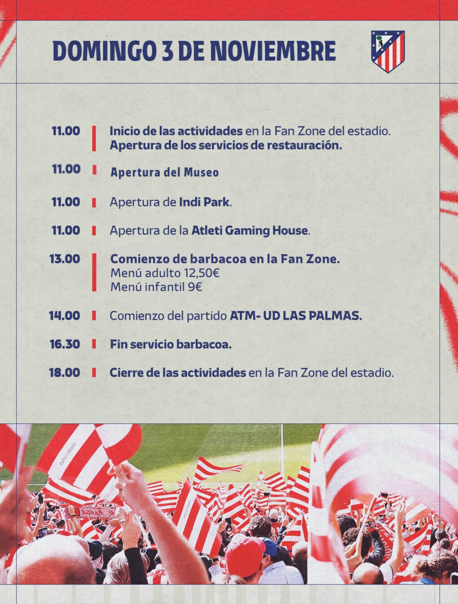 A las 11:00 horas tendrá lugar la apertura de la Fan Zone, donde podrás pasarlo en grande hasta las 18:00 horas, momento en el que comenzará el partido. Ese día, los más pequeños brincarán en los castillos hinchables, demostrarán sus habilidades jugando al EA Sports FC25 en la Atleti Gaming House y se divertirán en nuestro parque de ocio infantil Indi Park.