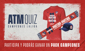 Celebra la conquista de nuestro undécimo título liguero participando en el 'Quiz de los campeones'. Intenta contestar correctamente a todas las preguntas que te formulamos y si eres uno de los atléticos que más respuestas correctas ha obtenido, entrarás en el sorteo de 10 packs de campeones, compuestos cada uno de ellos por una camiseta, una bufanda, una gorra y una mochila gymsack.