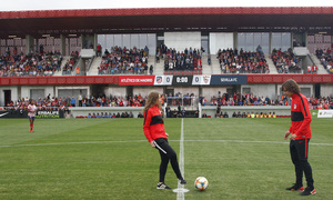 Los jugadores de la Academia fueron los encargados de realizar el saque de honor en el estreno de la Centro Deportivo Wanda Alcalá de Henares en el partido que enfrentó al Atlético de Madrid Femenino y al Sevilla FC.