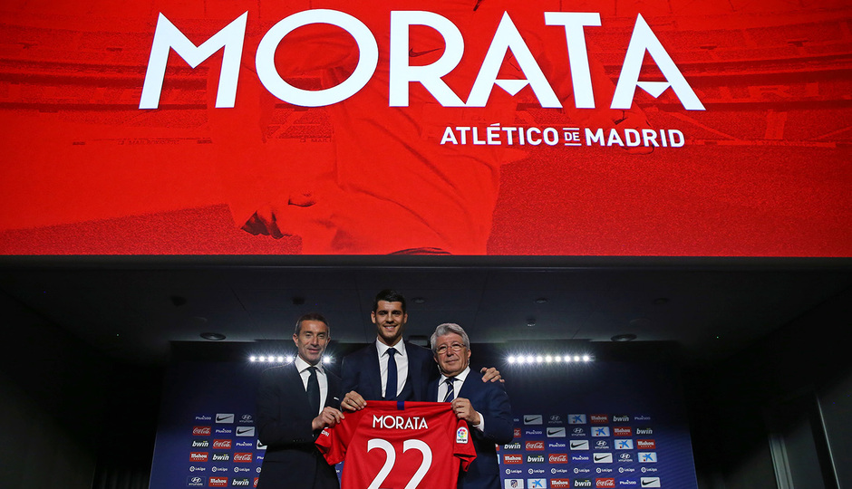 Posteriormente, el presidente reconoció el gran talento que atesora nuestro nuevo fichaje: “Velocidad, desmarque y gol. Morata es un ariete con instinto y regresa al Atlético de Madrid para aumentar la competencia que nuestro equipo tiene en ese puesto donde contamos con grandes estrellas”.