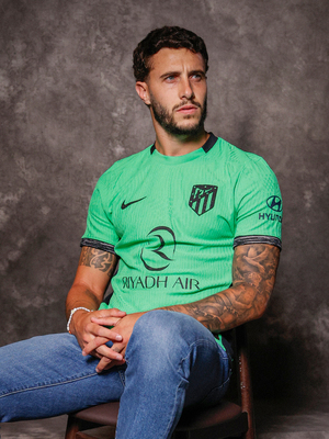 Nuestra tercera equipación para la presente temporada 2023/24 ya está aquí. De color predominantemente verde -con remates negros en los laterales, en el interior del pantalón, en las mangas y en el cuello-, su diseño está inspirado y pone en valor el concepto de sostenibilidad. Un concepto que además se encuentra plasmado en el escudo y en el swoosh característico de Nike, pues ambos presentan un moteado fabricado con materiales reciclados de suelas de zapatillas y de otros productos, así como en el propio cuello, donde puede leerse el lema 'Play Green. Atleti', un programa de proyectos de sostenibilidad impulsados por el club y la Fundación.