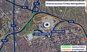 Así pues, ya se puede circular por la rotonda para llegar al estadio desde Coslada y desde la M-40 Sur como para salir del estadio hacia Coslada y hacia la M-40 en ambas direcciones M-40 Sur y M-40 Norte. No obstante, en las horas previas a los partidos, el tráfico procedente de la M-40 Sur será dirigido a la M-201 hacia Coslada para posteriormente hacer un cambio de sentido y cruzar la rotonda hacia la Avenida de Arcentales, tal y como ya se venía realizando antes del corte de la rotonda.