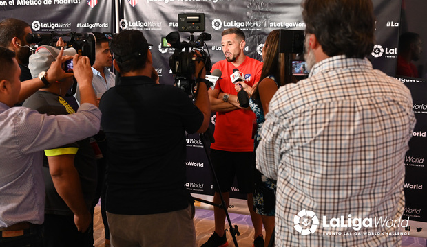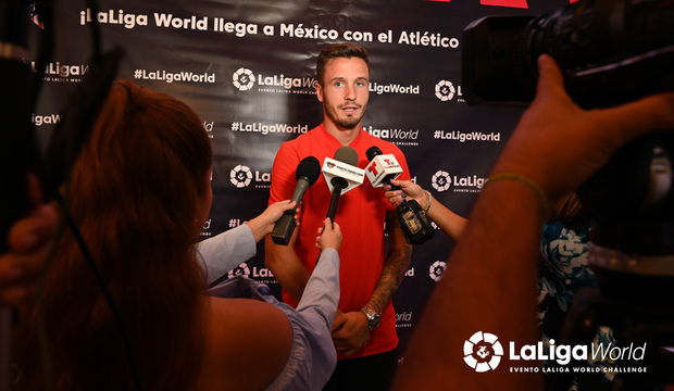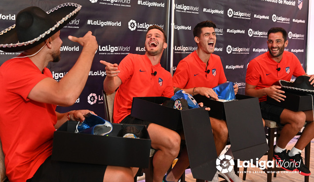 Nuestros jugadores Héctor Herrera, Saúl Ñíguez, Álvaro Morata y Antonio Adán atendieron a los medios de comunicación que se dieron cita en el evento organizado por LaLiga para presentar el partido amistoso que disputaremos este sábado en México ante el Atlético de San Luis.