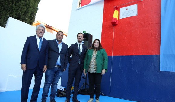 La Peña Atlética 4 Bandas Tomás Reñones Ronda, junto a distintas personalidades del club, estrenaron la Plaza Luis Aragonés en la localidad rondeña.