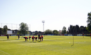 El cuerpo técnico rojiblanco empezó a preparar la final de Copa ante el Real Madrid con la ausencia de los titulares, por descanso, en el partido ante el Barcelona. Todo listo para una semana mágica.