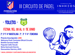 La ciudad de Toledo será la capital del pádel durante cuatro días, entre el 8 y el 11 de junio, ya que dentro de ella tendrá lugaruna gran competición de pádel: la tercera parada del Circuito Fundación Atlético de Madrid.
