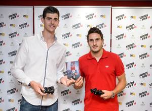 El Atlético es protagonista en este inicio de temporada en Liga, en Champions y también en el nuevo FIFA 14, que contó en su lanzamiento en Madrid con dos de los nuestros. Thibaut Courtois y Koke atendieron a la prensa, firmaron videojuegos e hicieron las delicias de los jugones que se acercaron a adquirir el nuevo título de EA SPORTS.