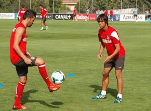 La sesión comenzó temprano, a las 8:30, y se extendió durante una hora y media. Carlos Menéndez diseño un trabajo de tonificación muscular, velocidad y definición en portería. La habitual carrera continua y los ejercicios de estiramientos dieron paso a un circuito físico de tonificación para prevenir posibles lesiones en la parte física de la sesión.