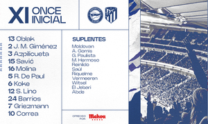 - Once del Atlético de Madrid: Oblak, Molina, Savic, Giménez, Azpilicueta, Lino, Barrios, Koke, De Paul, Correa y Griezmann.