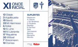 Ya conocemos las alineaciones titulares para el Atleti-Celta