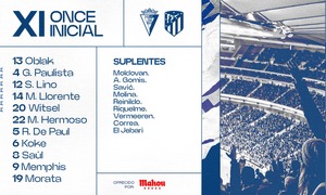 - Once del Atlético de Madrid: Oblak, Llorente, Witsel, Paulista, Hermoso, Lino, Koke, De Paul, Saúl, Memphis y Morata.