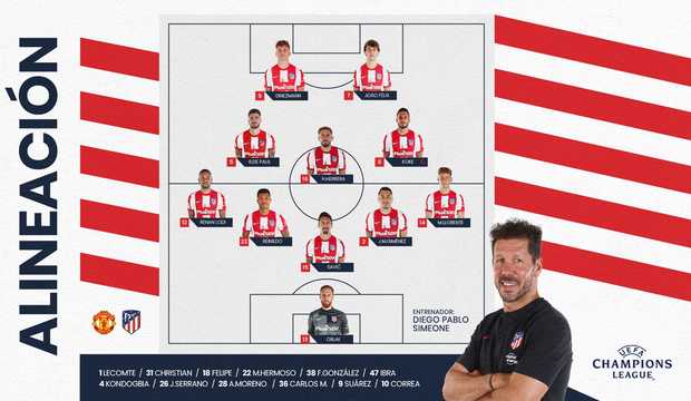 Ya conocemos las alineaciones titulares para el United-Atleti