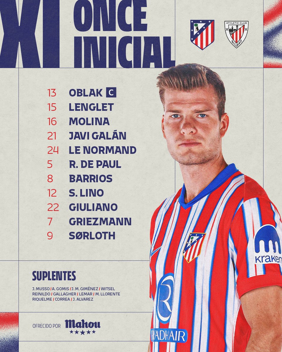 - ⏱ 59' | Atleti 0-0 Athletic Club 🔄 Entran Gallagher, Llorente y Julián por Giuliano, Lino y Sørloth.