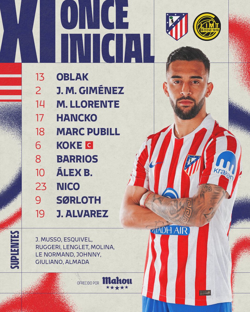 ⏱ 65' | Atleti 1-2 Bodø/Glimt 🔄 Nico y Koke son sustituidos por Molina y Johnny