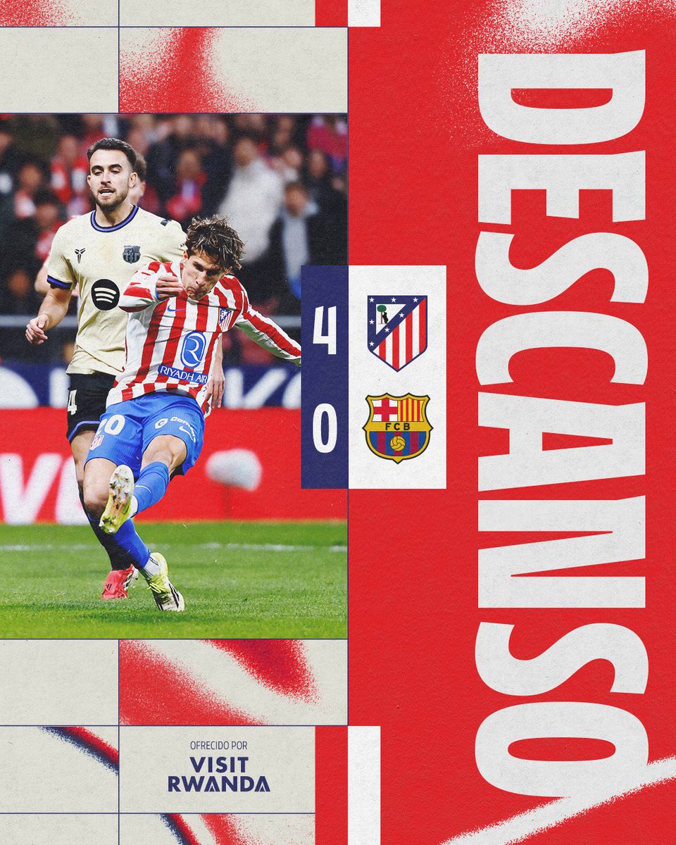 - ⏱ 45' | Atleti 3-0 FC Barcelona Tres minutos de tiempo añadido.