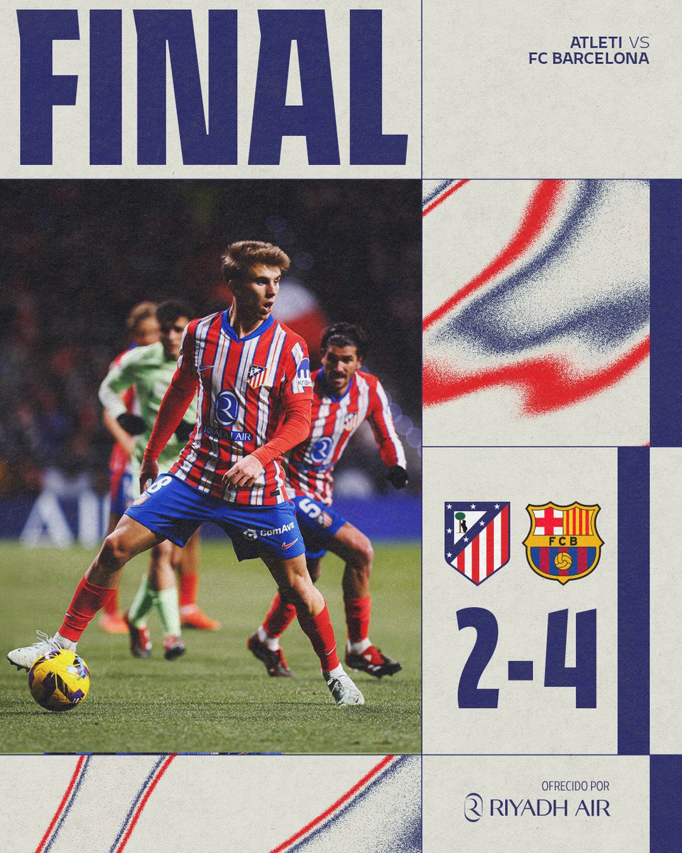 - ⏱ 73' | Atleti 2-1 FC Barcelona Lewandowski acorta distancias.