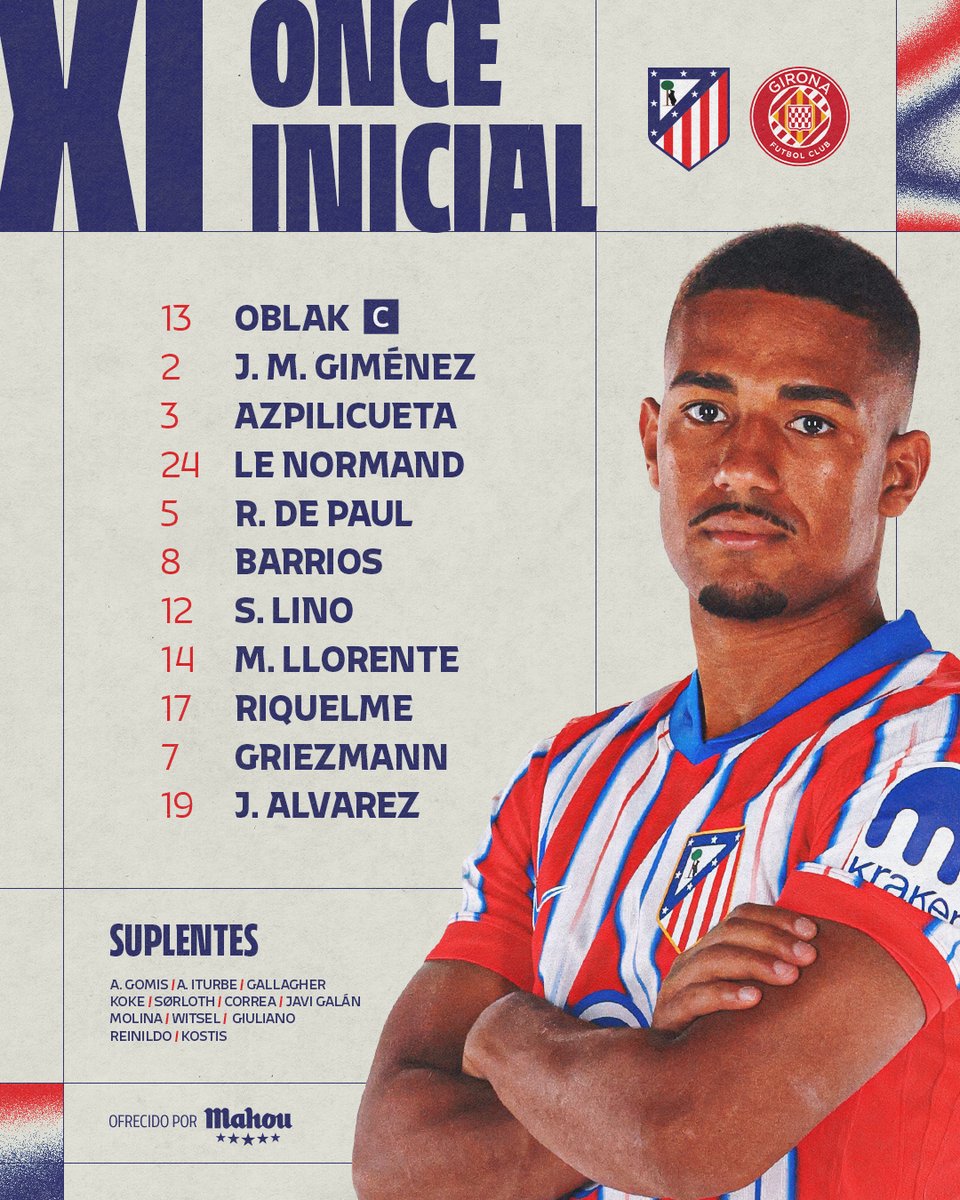 📋 ¡Estos son los futbolistas citados por Simeone para el Atleti-Girona! https://t.co/6rlGZK96Pu