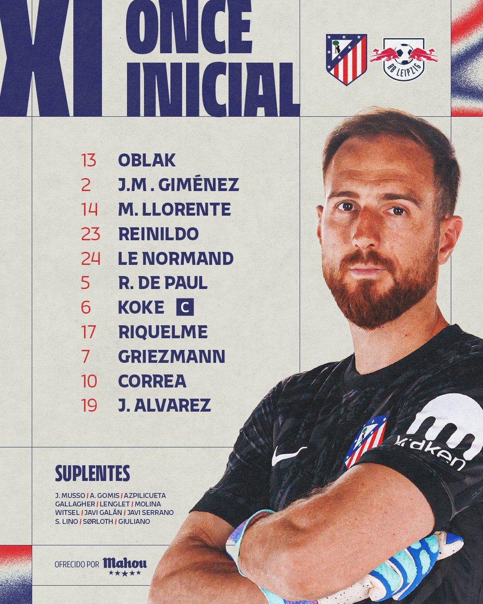 - ⏱ 63' | Atleti 1-1 RB Leipzig 🔄 Entran Lino, Gallagher y Sørloth por Riquelme, De Paul y Julián.