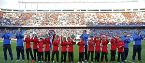 Nuestro equipo benjamín, vencedor de la Isar Cup 2015, recibió la ovación del Vicente Calderón antes del partido frente a la Real Sociedad. Fotografías: Ángel Gutiérrez