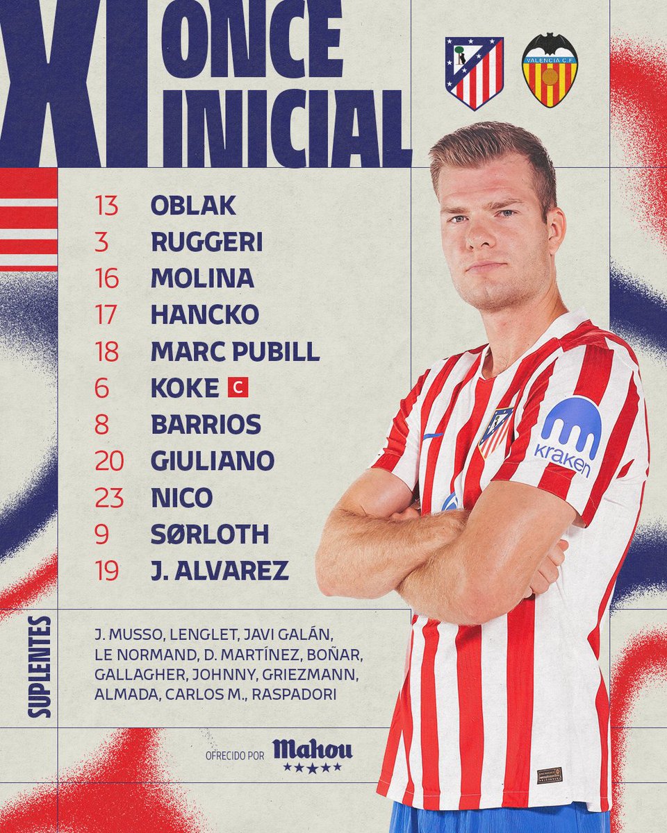- ⏱ 42' | Atleti 1-0 Valencia 🟨 Amarilla para Sørloth.