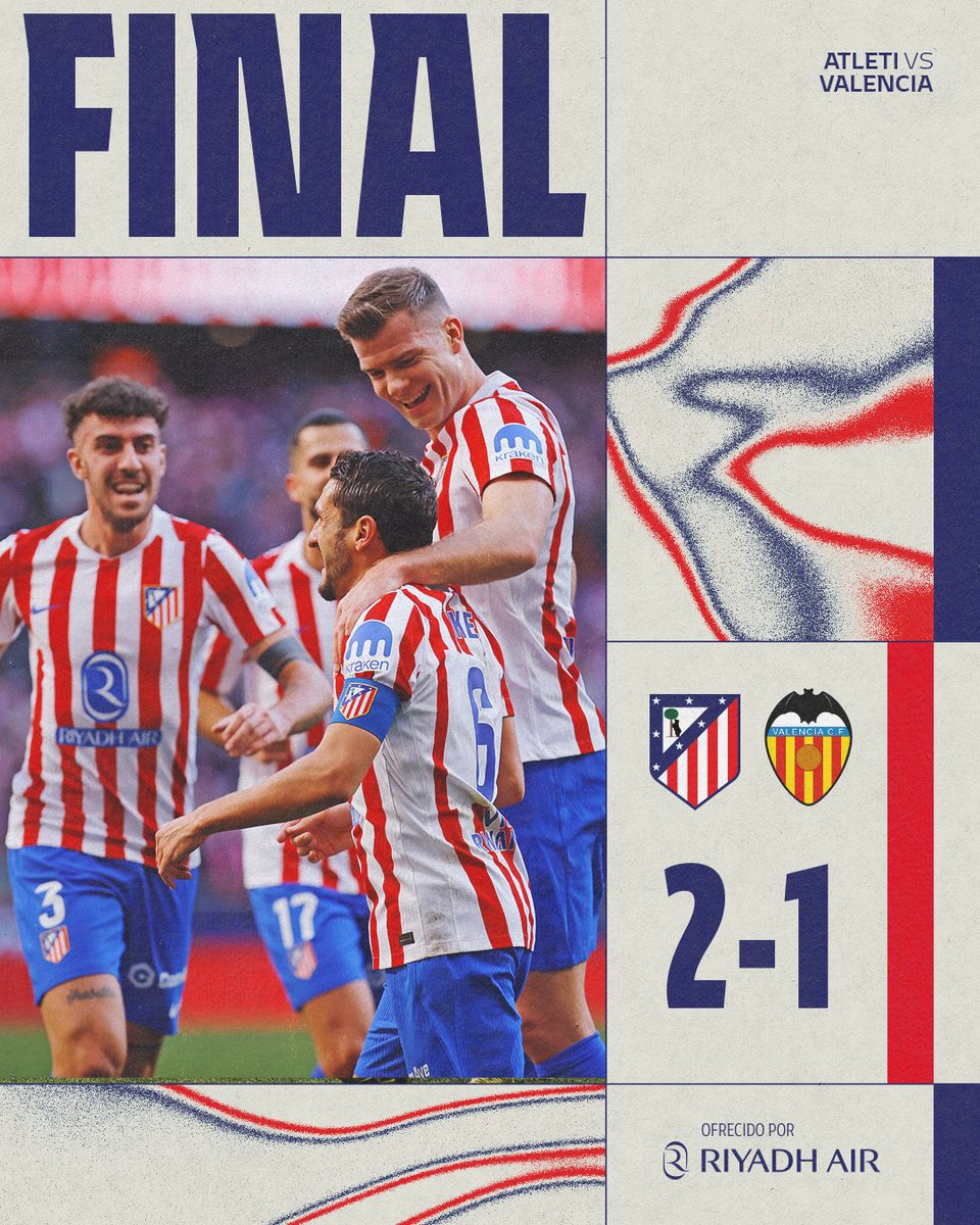 - ⏱ 88' | Atleti 2-1 Valencia 🟨 Amarilla para Hugo Duro.