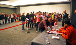 Los jugadores Lucas y Carrasco compartieron unos minutos con 200 socios del club que acudieron al hotel de concentración del equipo en Barcelona. Los socios recibieron los autógrafos y se hicieron fotos con los jugadores.