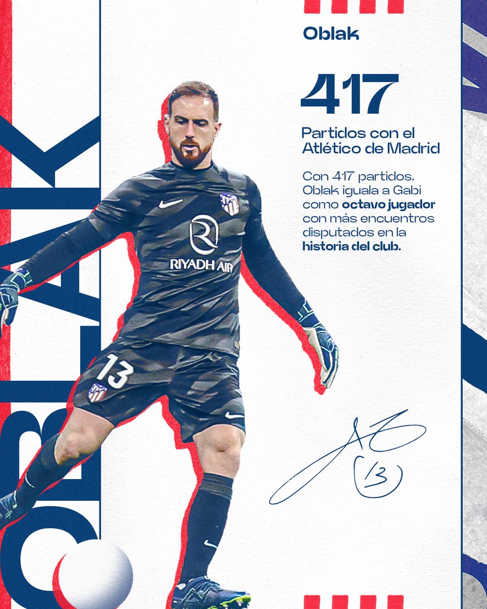 Jan Oblak iguala a Gabi como el octavo jugador con más encuentros en la historia del club 🔝