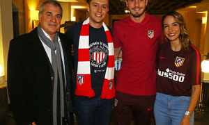 El presidente de la peña, José Álvarez, y la directiva, Alba Gómez, obsequiaron a nuestro jugador con un escudo hecho de piedra y adornado con dos botones charros.
