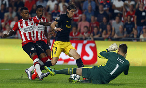 El lateral atendió a los medios de comunicación en la zona mixta del Philips Stadion tras la primera victoria en la fase de grupos de la Liga de Campeones.