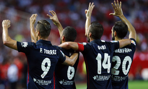 El colombiano anotó su primer tanto con la camiseta rojiblanca en el Sánchez Pizjuán. El delantero superó a Beto con un excelente disparo desde la frontal del área.