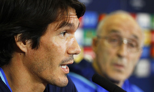 El técnico del Rostov y el jugador César Navas atendieron a los medios de comunicación en la previa al encuentro de este martes en el Vicente Calderón.