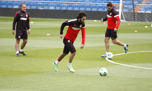 La expedición rojiblanca se entrenó en el Santiago Bernabéu, escenario de la final, unas horas antes del partido. En total, 21 jugadores trabajaron en la sesión previa al encuentro.