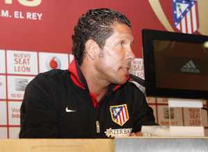 Diego Pablo Simeone, entrenador del Atlético de Madrid, se mostraba tranquilo en la rueda de Prensa previa a la final de Copa del Rey que el entrenador y dos de los capitanes, Gabi y Falcao, dieron en la sala de Prensa del Estadio Santiago Bernabéu. El técnico confirmó el once para la final.