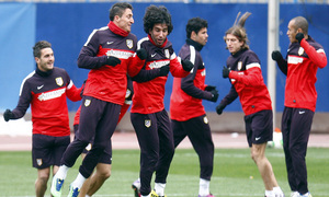 La expedición del Atlético de Madrid llegaba a la estación de Santa Justa alrededor de las 22 horas y allí le esperaban algunos seguidores rojiblancos que animaron a sus ídolos.