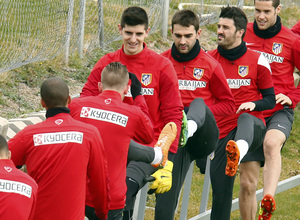 El Atlético de Madrid completó su último entrenamiento antes de recibir el sábado, a las 16:00, al Valladolid en el Vicente Calderón. Thibaut Courtois recibió el alta médica al superar sus molestias en la espalda / FOTO: Ángel Gutiérrez
