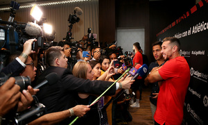 Juan Manuel Carreras, gobernador de San Luis Potosí, recibió a la expedición rojiblanca tras su llegada a la ciudad mexicana con motivo de la disputa del amistoso ante el Atlético de San Luis.