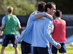 Entrenamiento del primer equipo durante la mañana del viernes en la Ciudad Deportiva de Majadahonda con la única ausencia de Tiago en la previa del partido frente al Córdoba.