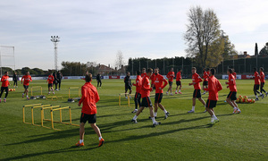 Última sesión antes de viajar a Granada 4. diciembre. 2015 Todo preparado para disputar una nueva jornada de Liga. Los nuestros se ejercitaron en la Ciudad Deportiva con la mente puesta en el encuentro frente al Granada.