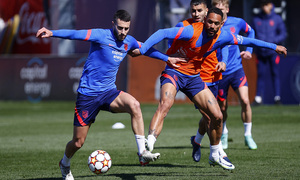 Nuestro jugador compareció junto a Diego Pablo de Simeone en la sala de prensa del Etihad Stadium para analizar el encuentro de Liga de Campeones ante el Manchester City.