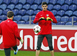 El Atlético de Madrid se ejercitó en la tarde del lunes en el escenario del partido frente al Oporto bajo la lluvia. Los 20 jugadores que Simeone desplazó hasta Oporto trabajaron durante una hora.