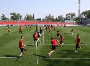 La primera plantilla preparó el próximo choque frente al Valencia CF desde las 19:00 horas. Griezmann, que ayer entrenó en el gimnasio, hoy se ejercitó con el resto de la plantilla, mientras que el montenegrino Stefan Savic lo hizo en el gimnasio.